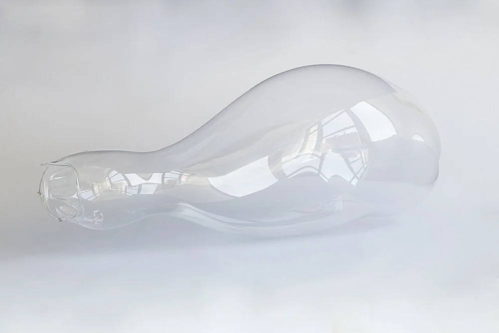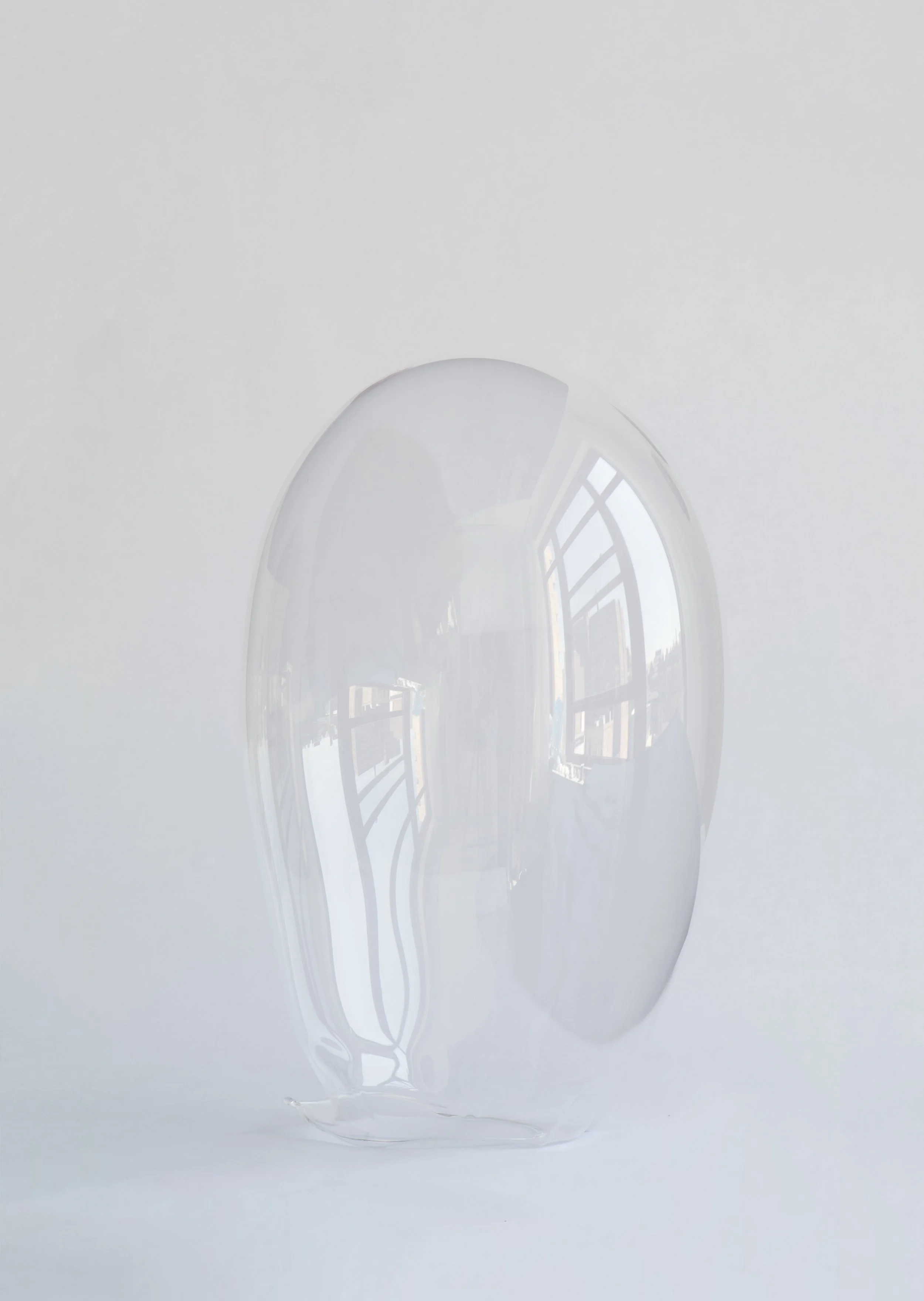 This series of pieces explore visualizing the lungs volume during a forced breath. In a forced breath, the amount of air generally will not exceed 6,000 mL, and will always be less than the total lung volume. Under special circumstances the volume of the air may be as great as 8,000 mL, possibly more. In order to capture meaningful visualizations of this volume, specific perameters were followed in regard to glass temperature—each piece utilizing only furnace heat and being prepared and blown following strict time guidelines. Special attention was also paid to volume of glass—each piece is composed of a single gather on identically sized pipes.